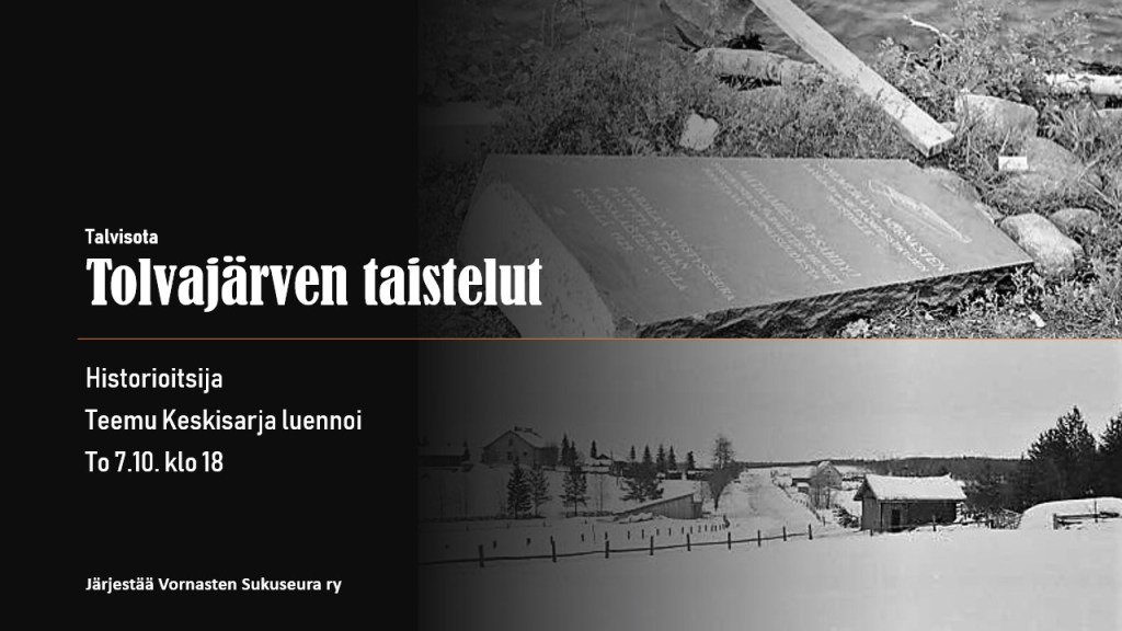 Historioitsija Teemu Keskisarja kertoo talvisodan Tolvajärven taisteluista to 7.10. 2021 klo 18 järjestettävässä etäluennossa.