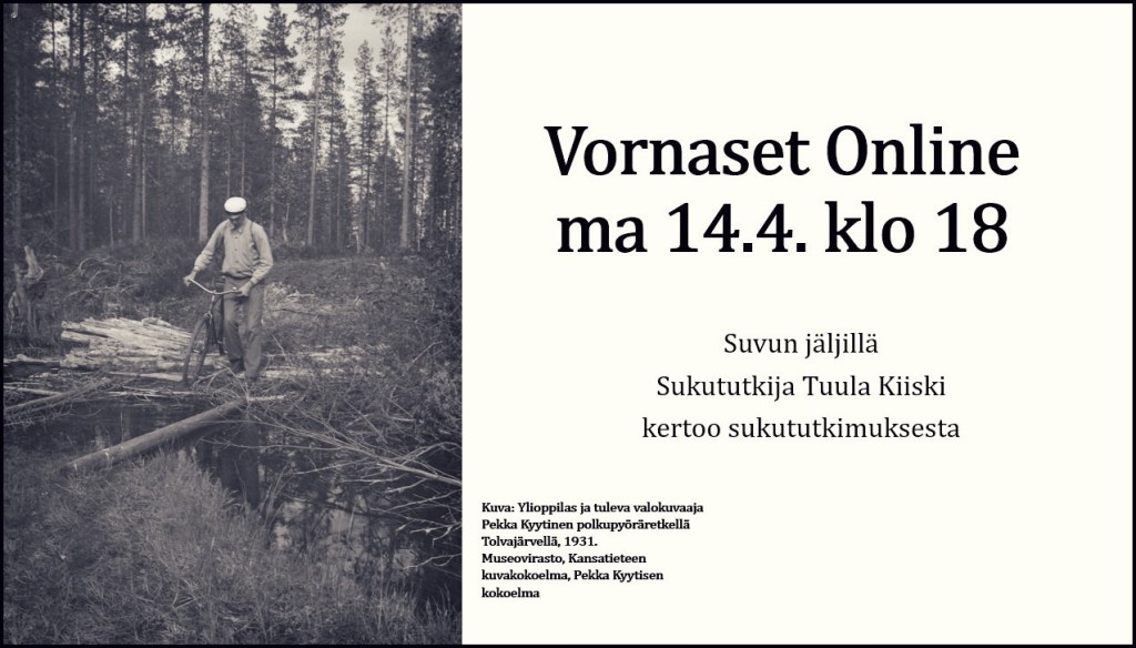 Vornasten Sukuseuran Online-tilaisuudet jatkuvat.